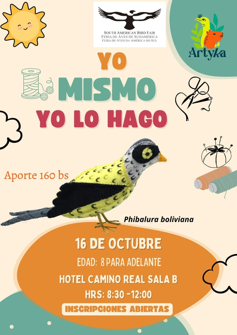 Ven a coser con nosotros un peluche de una ave endémica de Bolivia y lleva a casa un recuerdo hecho por ti mismo.